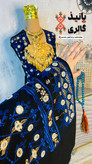 لباس به صورت ترکیبی از دوخت چرخ و دست آماده شده است؛ زمینه لباس با چرخ و حلقههای دور آینه با دست دوخته شدهاند تا ظرافت و دوام بیشتری داشته باشد.