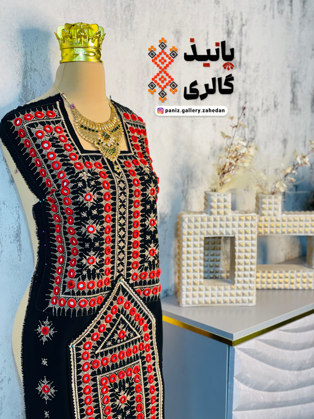 🎀لباس به صورت ترکیبی از دوخت چرخ و دست آماده شده است؛ زمینه لباس با چرخ و حلقههای دور آینه با دست دوخته شده اند تا ظرافت و دوام بیشتری داشته باشد.