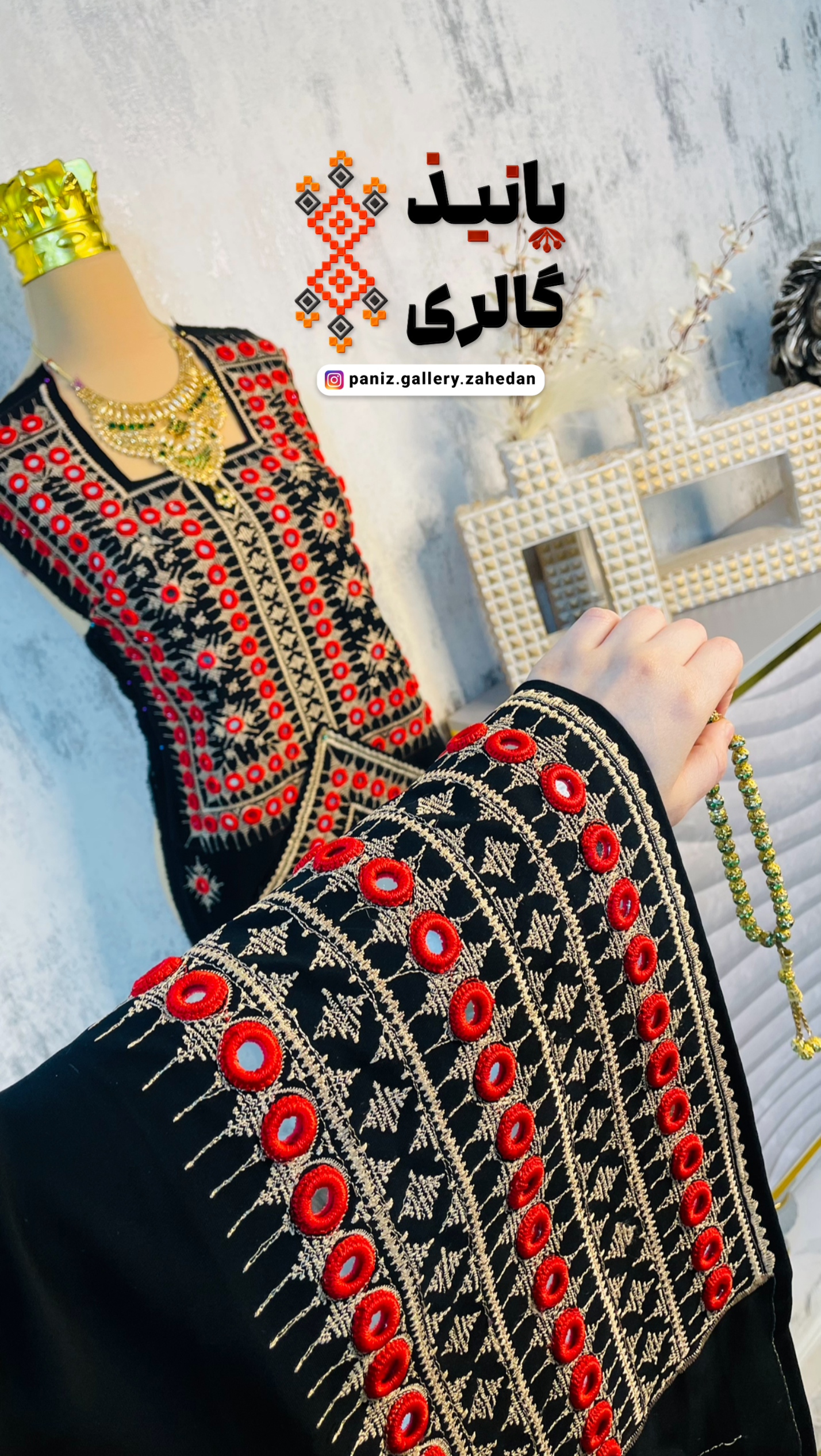 🎀لباس به صورت ترکیبی از دوخت چرخ و دست آماده شده است؛ زمینه لباس با چرخ و حلقههای دور آینه با دست دوخته شده اند تا ظرافت و دوام بیشتری داشته باشد.