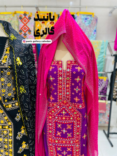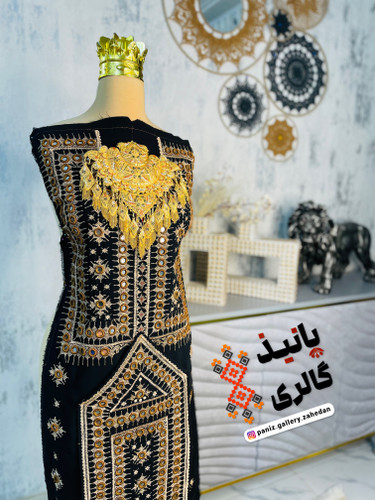 لباس بلوچی هزارآینه سیاه دوچ پانیذگالری🖤🩷